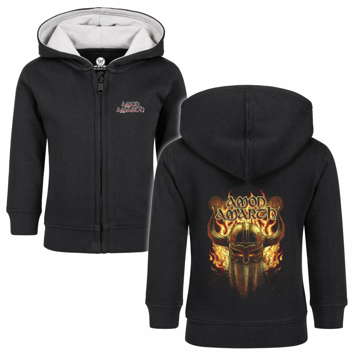 In die Produktentwicklung dieser Amon Amarth (Helmet) Jacke sind unsere eigenen Erfahrungen als Eltern eingeflossen. Wir kombinieren unsere Lieblingsmotive mit praktischen und sinnvollen Details. Die Kapuze ist innen mit einer extra Schicht aus stabilem Jersey Stoff ausgelegt. Damit schützt du den empfindlichen Baby-Kopf vor dem Auskühlen. Und es macht dieses Baby Jäckchen auch optisch zu einem echten Hit.