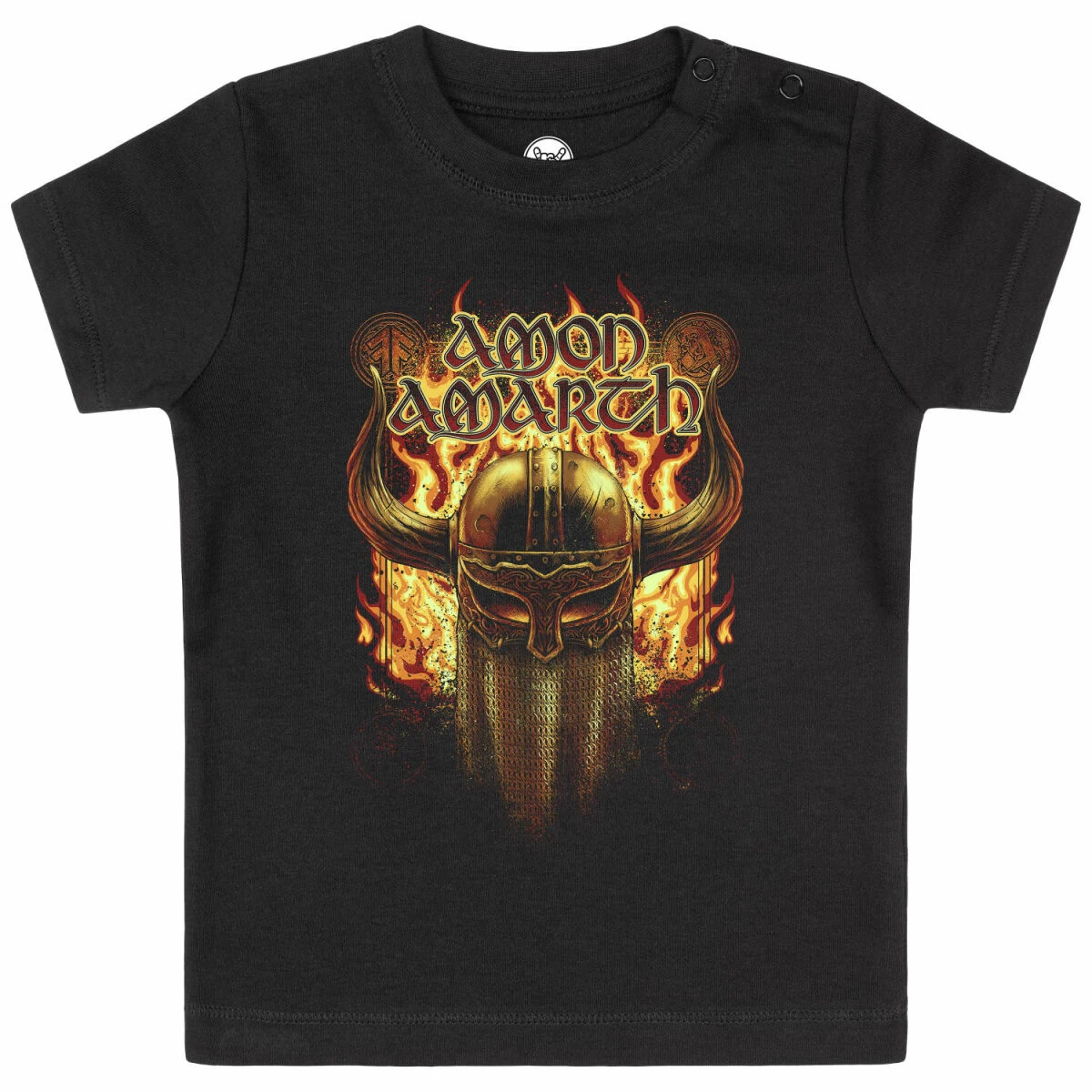 Unser Amon Amarth T-Shirt für Babys ist vielseitig tragbar. Während ein Body eher unter einem Shirt oder Pulli getragen wird, kann man unser Kurzarm T-Shirt auch mal über einem Longsleeve tragen. Das ist vor allem bei kälteren Temperaturen sehr praktisch. Dank der Druckknöpfe am Hals, lässt es sich sehr einfach an- und ausziehen. Damit die Druckknöpfe nicht auffallen, sind sie farbig an den Stoff angepasst.