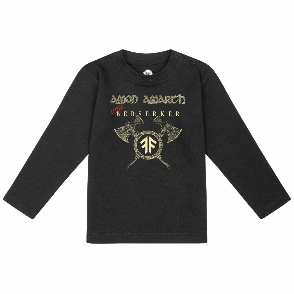 Unser Amon Amarth (Little Berserker) Baby Langarmshirt bietet dir alle Vorteile, die das T Shirt auch hat. Der Stoff ist angenehm weich und mit 200g/m² auch wirklich schön fest. Und trotzdem ist er gut dehnbar, damit es einfach angezogen werden kann. Die drei Knöpfe am Hals helfen dir dabei, dass Shirt gut über den „dicken“ Kopf zu ziehen. Sie sind in der gleichen Farbe, wie der Stoff, damit sie nicht so auffallen. Die Aufmerksamkeit soll ja auf dem tollen Little Berserker Druck liegen. Der ist natürlich auf die Babyfreundlichkeit getestet.