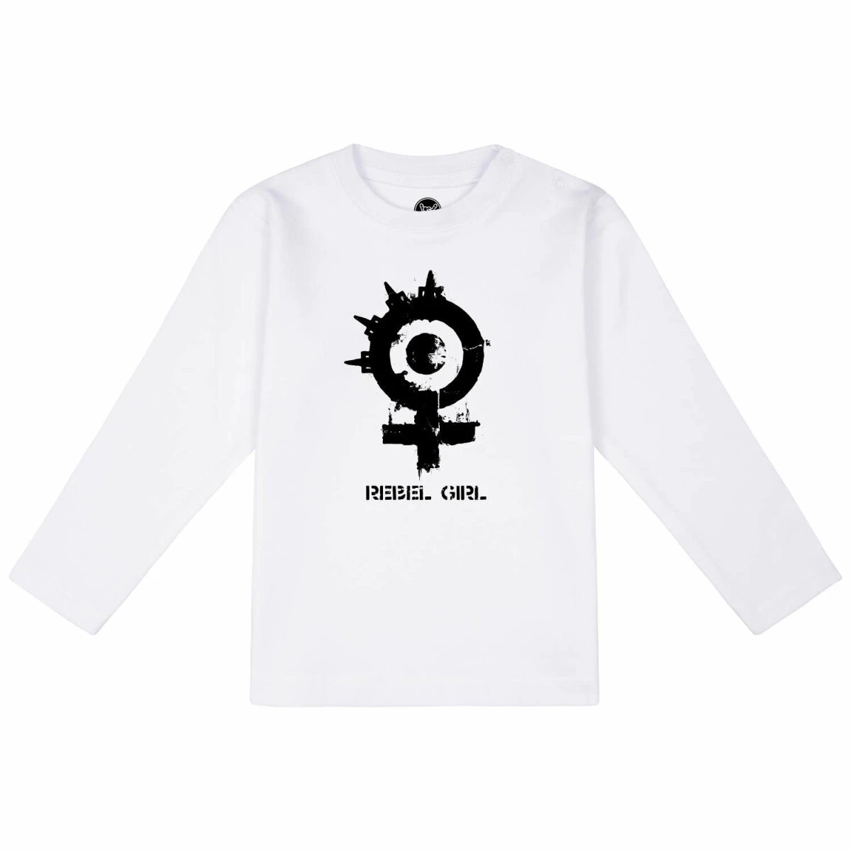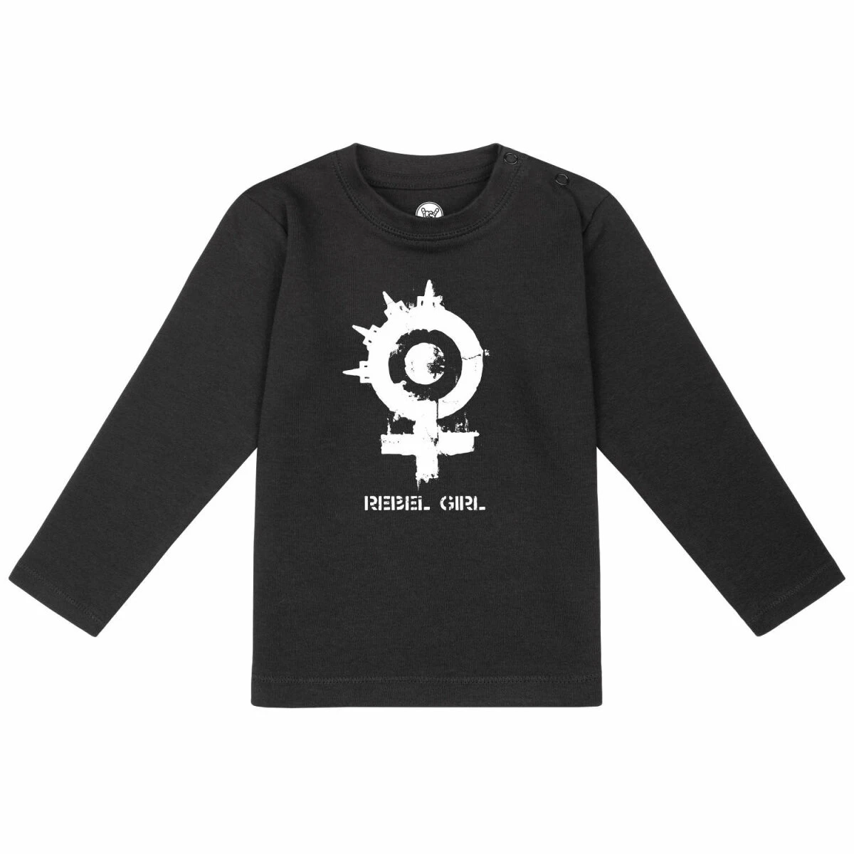 Unser Arch Enemy (Rebel Girl) Baby Langarmshirt bietet dir alle Vorteile, die das T Shirt auch hat. Der Stoff ist angenehm weich und mit 200g/m² auch wirklich schön fest. Und trotzdem ist er gut dehnbar, damit es einfach angezogen werden kann. Die drei Knöpfe am Hals helfen dir dabei, dass Shirt gut über den „dicken“ Kopf zu ziehen. Sie sind in der gleichen Farbe, wie der Stoff, damit sie nicht so auffallen. Die Aufmerksamkeit soll ja auf dem tollen Rebel Girl Druck liegen. Der ist natürlich auf die Babyfreundlichkeit getestet.