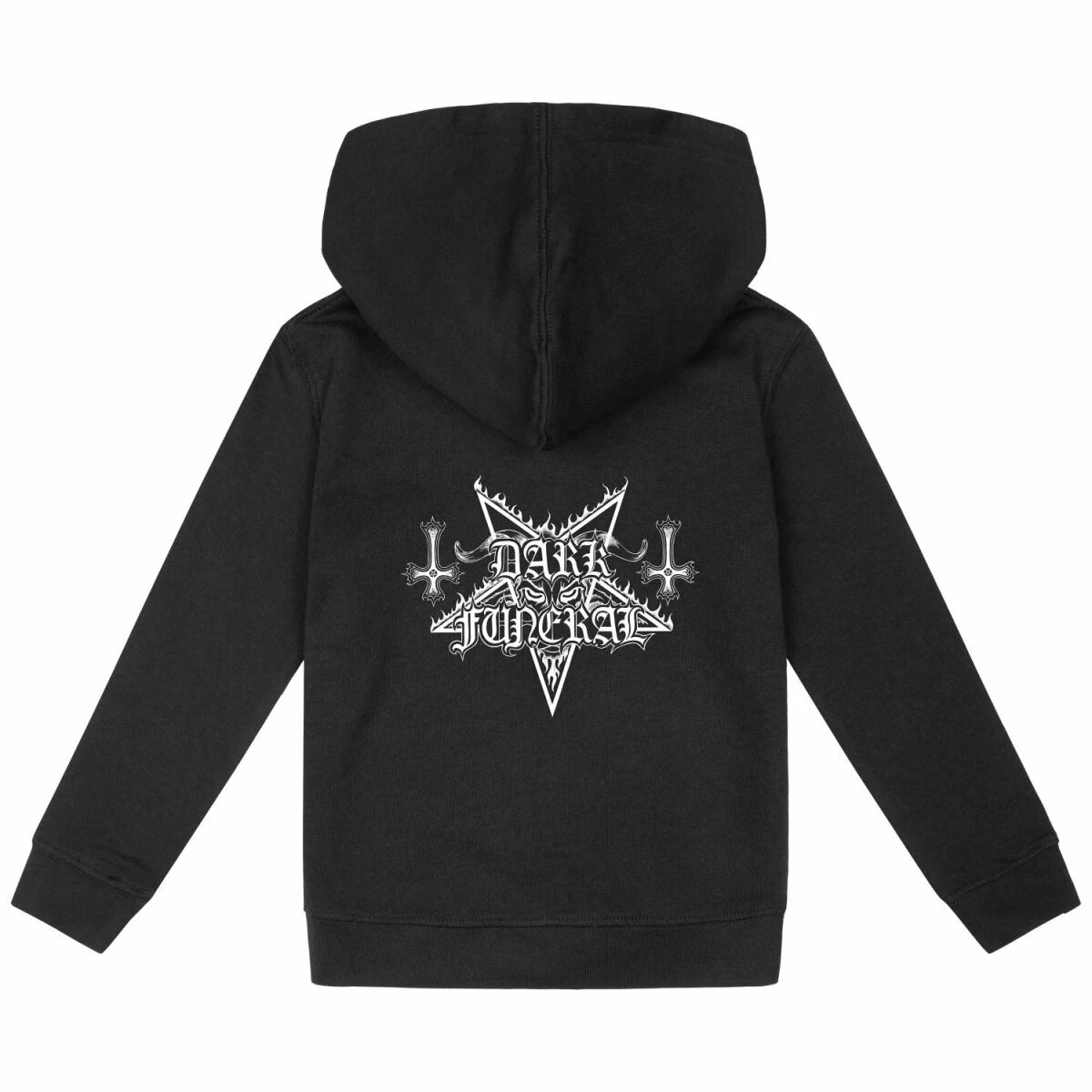 Unsere Dark Funeral Jacke ist wirklich etwas ganz Besonderes. Nicht nur wegen dem tollen Logo Motiv, sondern auch weil wir viel Herzblut in die Entwicklung gesteckt haben. Diese Kinder Kapuzenjacken gibt es nur bei uns, denn sie werden extra für uns hergestellt. Der Schnitt ist optimiert, dass er über mindestens zwei Kleidergrößen passt. So könnt ihr die Jacken einfach viel länger tragen.