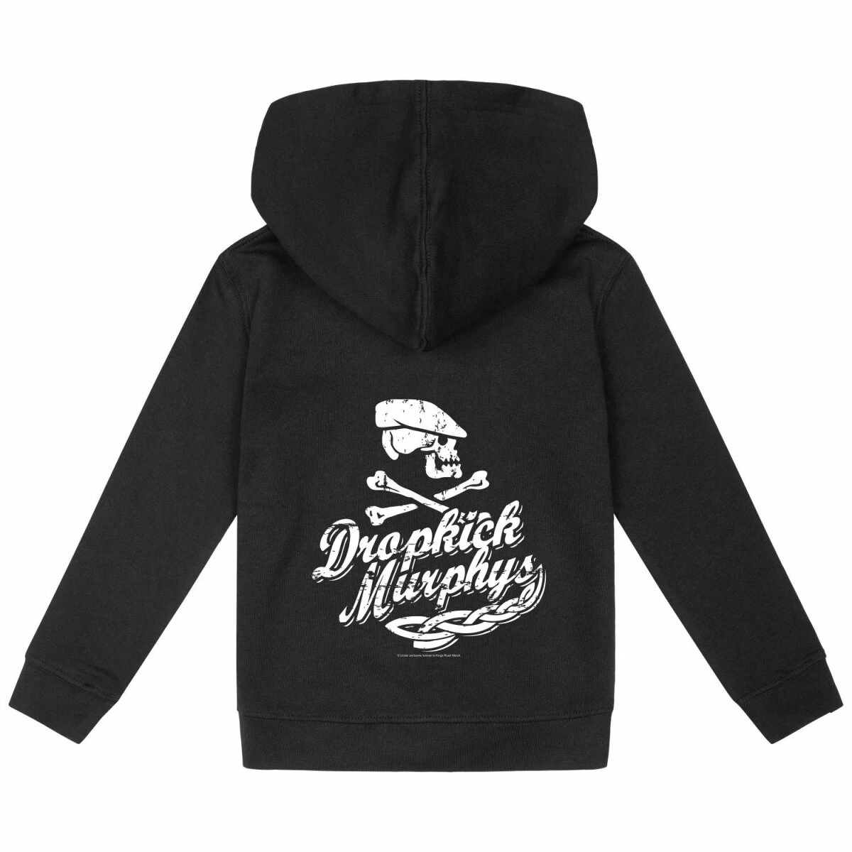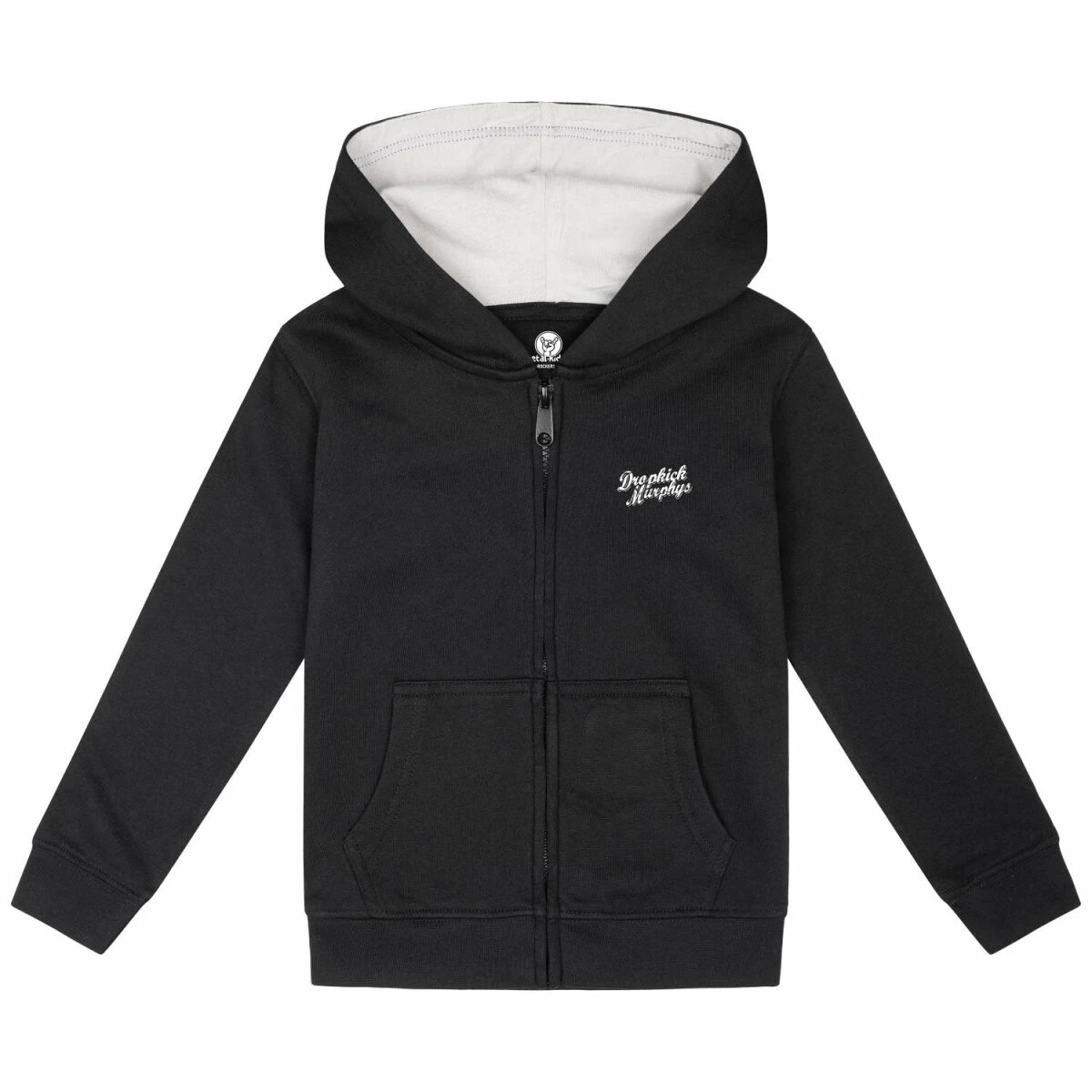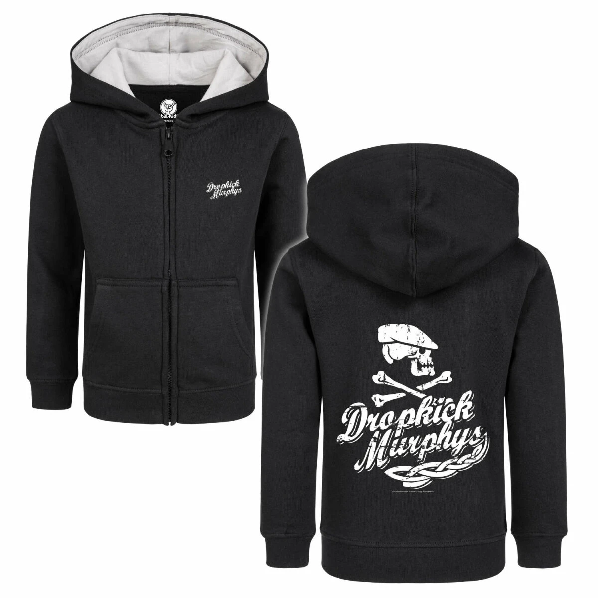 Unsere Dropkick Murphys Jacke ist wirklich etwas ganz Besonderes. Nicht nur wegen dem tollen Scally Skull Ship Motiv, sondern auch weil wir viel Herzblut in die Entwicklung gesteckt haben. Diese Kinder Kapuzenjacken gibt es nur bei uns, denn sie werden extra für uns hergestellt. Der Schnitt ist optimiert, dass er über mindestens zwei Kleidergrößen passt. So könnt ihr die Jacken einfach viel länger tragen.