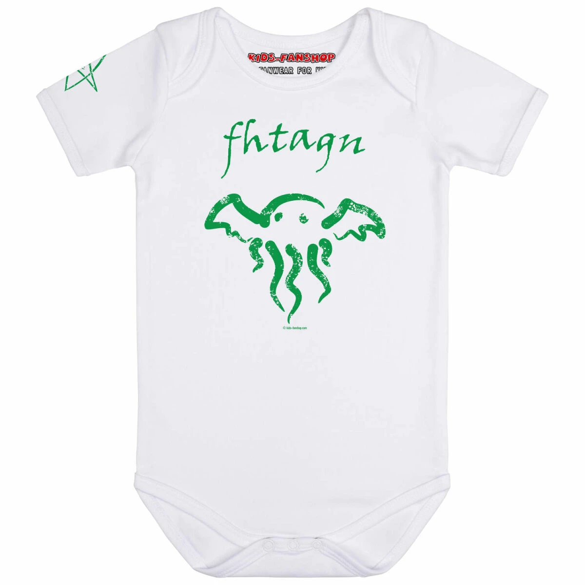 Dieser Fhtagn Strampler aus stabilem Interlock Stoff ist angenehm weich und damit ideal für die zarte Haut deines Babys.