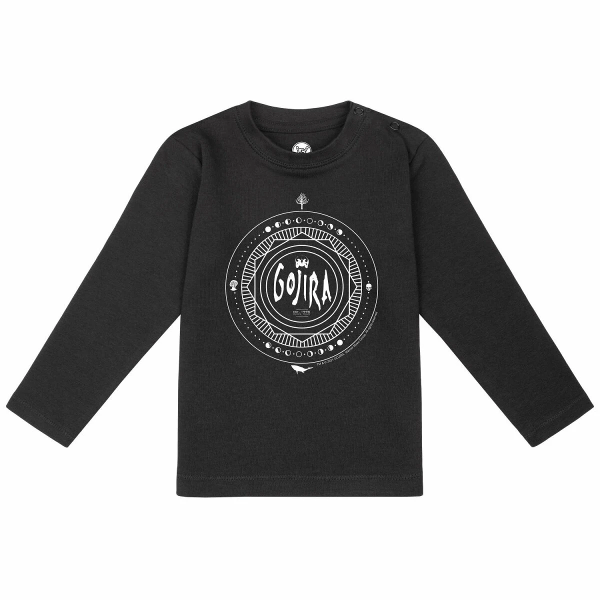 Unsere Gojira Longsleeve für Kinder sind zertifiziert und aus robustem Single-Jersey Stoff. Durch die langen Ärmel kann man sie sehr gut das ganze Jahr über anziehen. Im Kindergarten kommt der Gojira (Moon Phases) Druck bestimmt genauso gut an wie in der Schulklasse.