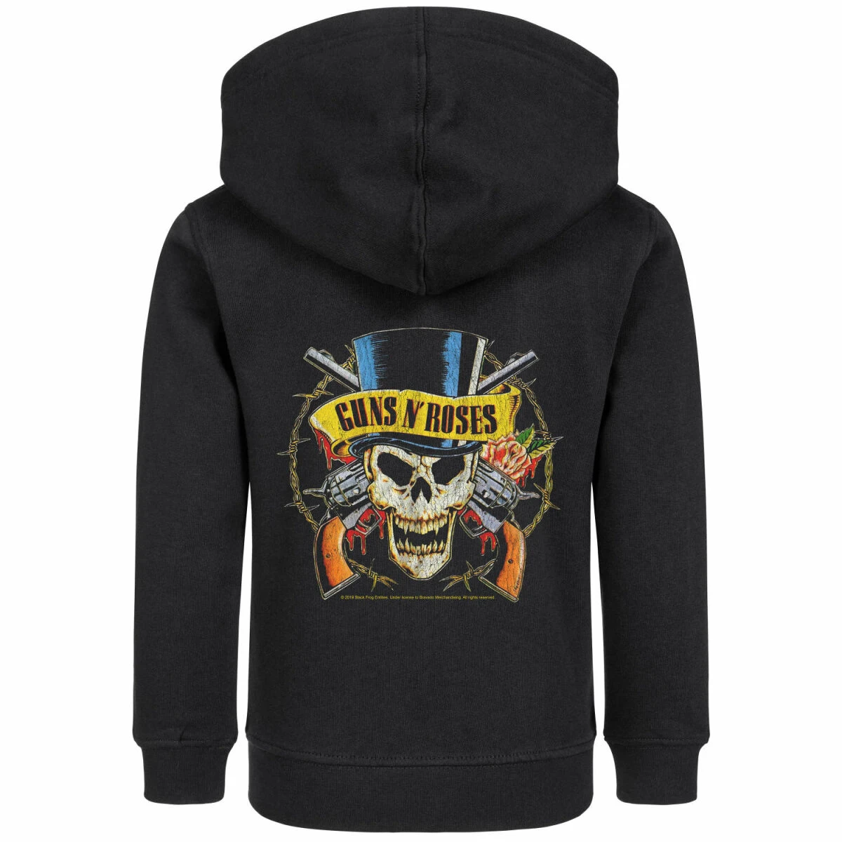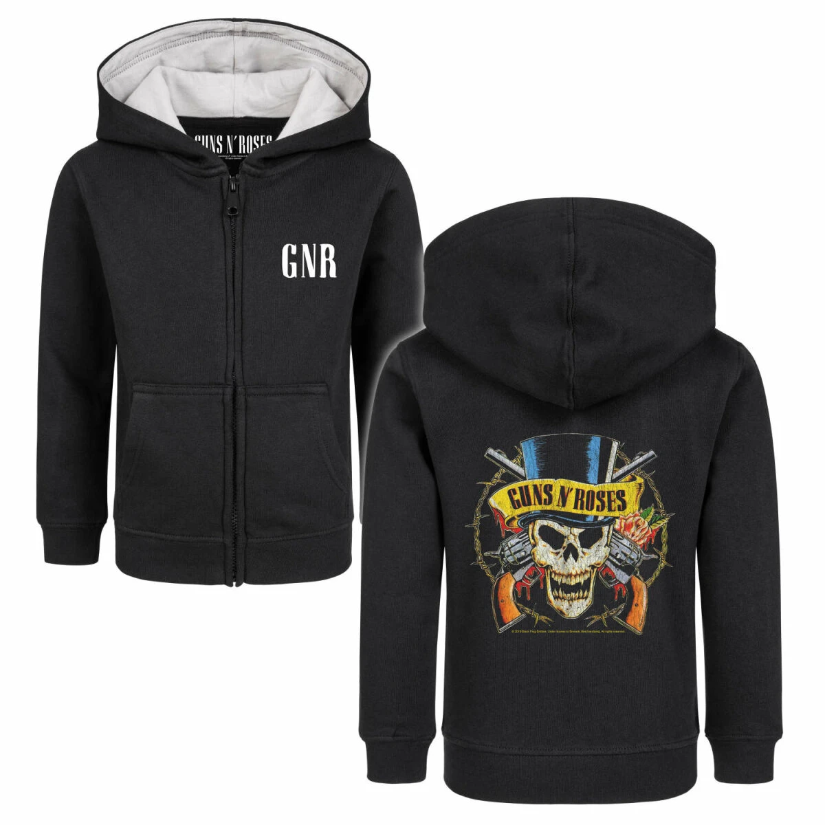 Unsere Guns ’n Roses Jacke ist wirklich etwas ganz Besonderes. Nicht nur wegen dem tollen TopHat Motiv, sondern auch weil wir viel Herzblut in die Entwicklung gesteckt haben. Diese Kinder Kapuzenjacken gibt es nur bei uns, denn sie werden extra für uns hergestellt. Der Schnitt ist optimiert, dass er über mindestens zwei Kleidergrößen passt. So könnt ihr die Jacken einfach viel länger tragen.