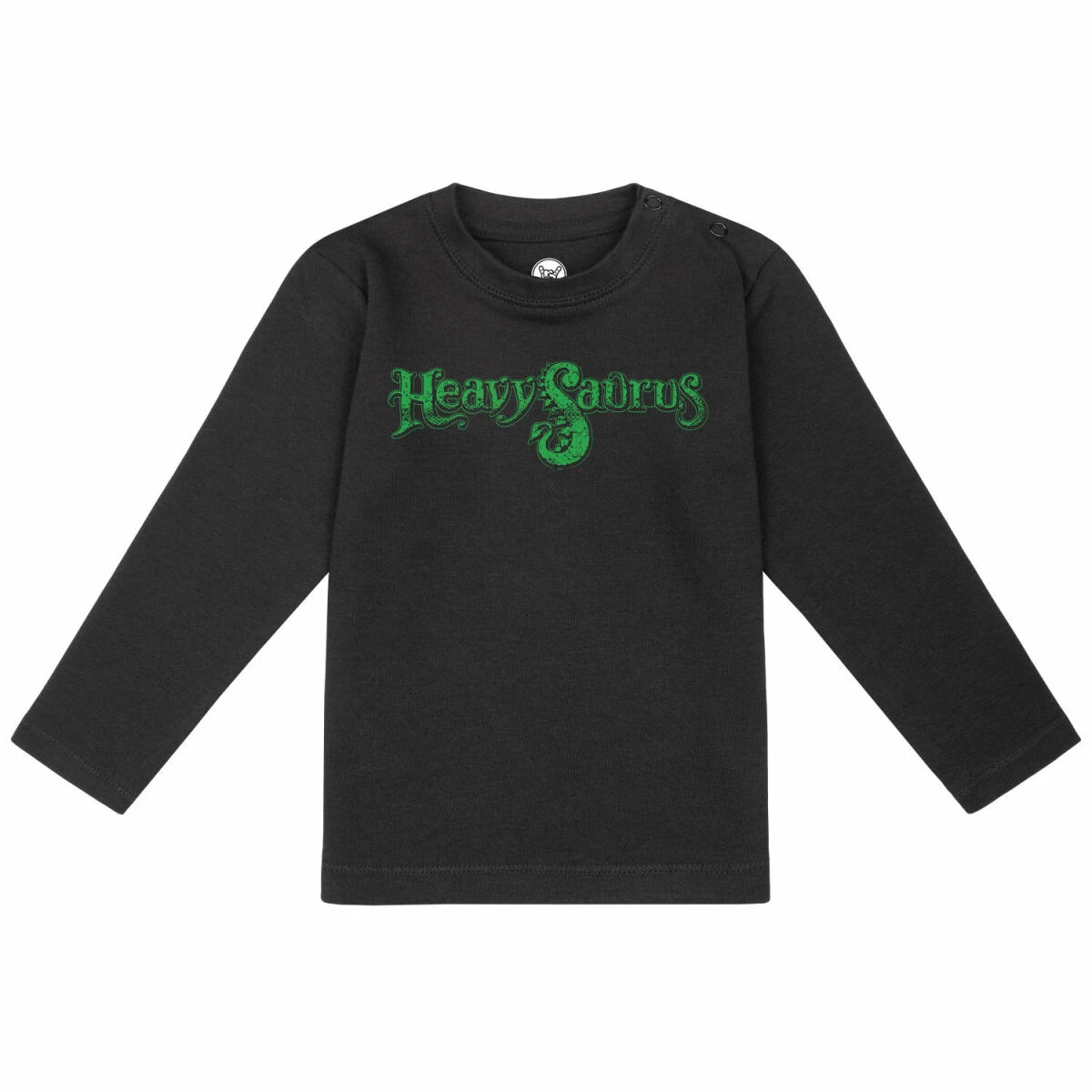 Unser Heavysaurus (Logo) Baby Langarmshirt bietet dir alle Vorteile, die das T Shirt auch hat. Der Stoff ist angenehm weich und mit 200g/m² auch wirklich schön fest. Und trotzdem ist er gut dehnbar, damit es einfach angezogen werden kann. Die drei Knöpfe am Hals helfen dir dabei, dass Shirt gut über den „dicken“ Kopf zu ziehen. Sie sind in der gleichen Farbe, wie der Stoff, damit sie nicht so auffallen. Die Aufmerksamkeit soll ja auf dem tollen Logo Druck liegen. Der ist natürlich auf die Babyfreundlichkeit getestet.