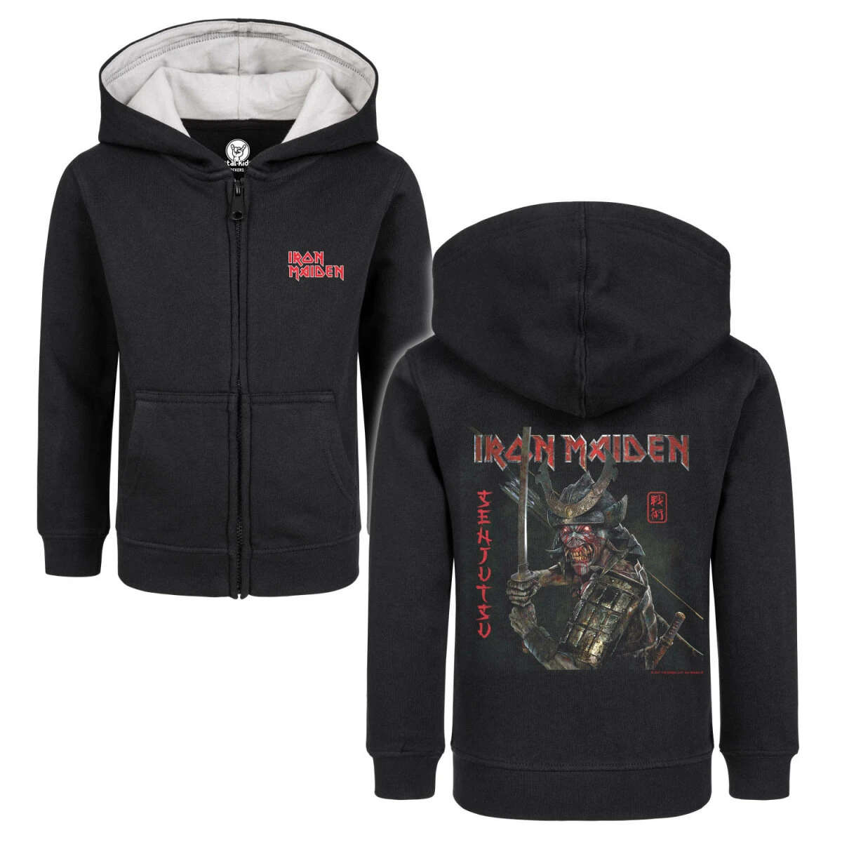 Unsere Iron Maiden Jacke ist wirklich etwas ganz Besonderes. Nicht nur wegen dem tollen Senjutsu Motiv, sondern auch weil wir viel Herzblut in die Entwicklung gesteckt haben. Diese Kinder Kapuzenjacken gibt es nur bei uns, denn sie werden extra für uns hergestellt. Der Schnitt ist optimiert, dass er über mindestens zwei Kleidergrößen passt. So könnt ihr die Jacken einfach viel länger tragen.
