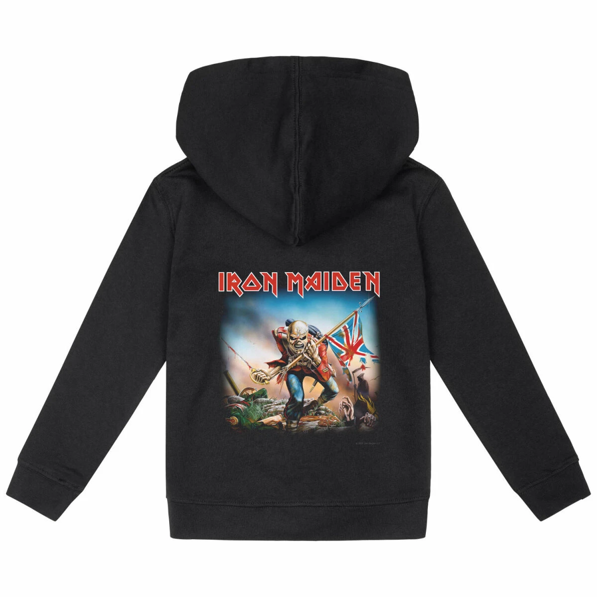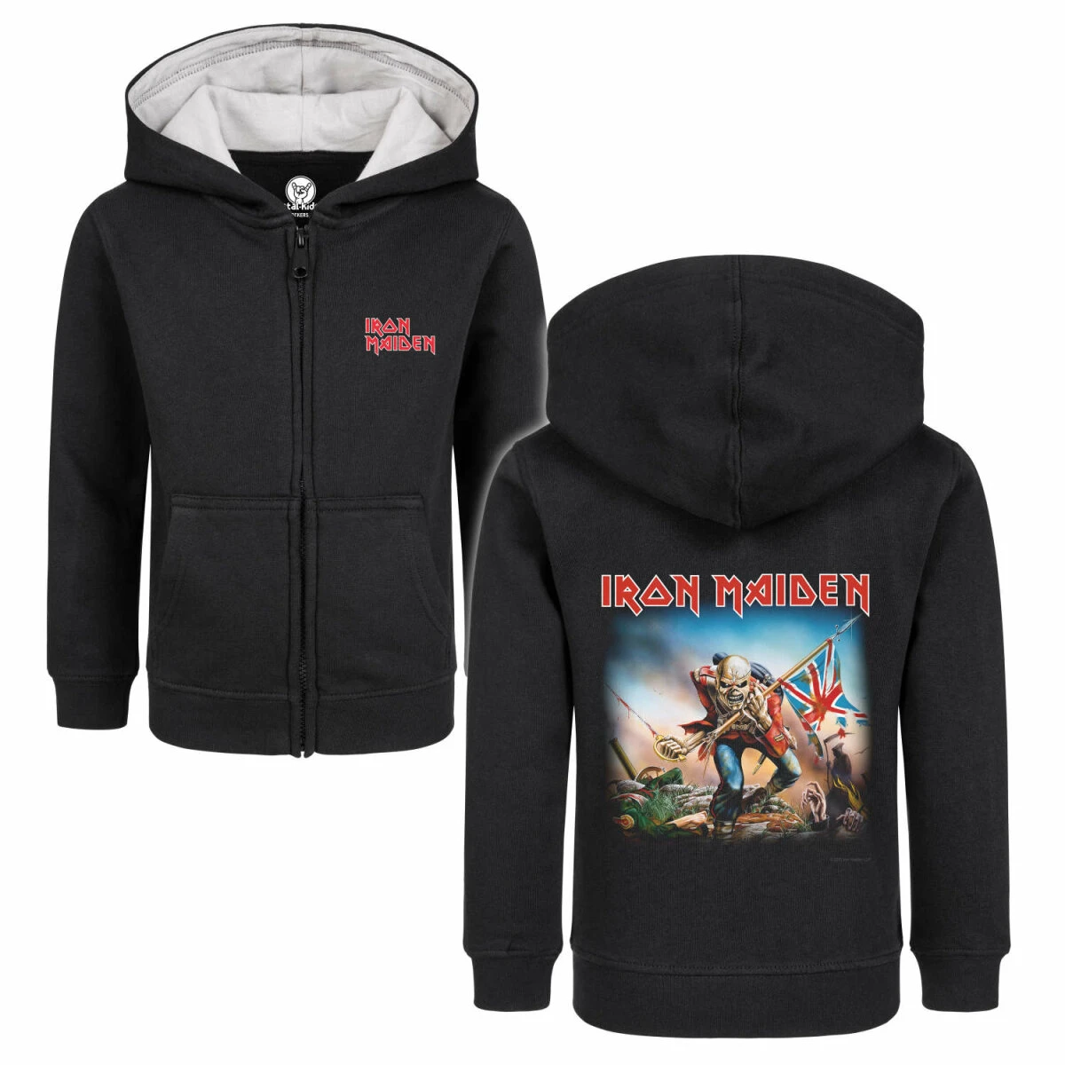 Unsere Iron Maiden Jacke ist wirklich etwas ganz Besonderes. Nicht nur wegen dem tollen Trooper Motiv, sondern auch weil wir viel Herzblut in die Entwicklung gesteckt haben. Diese Kinder Kapuzenjacken gibt es nur bei uns, denn sie werden extra für uns hergestellt. Der Schnitt ist optimiert, dass er über mindestens zwei Kleidergrößen passt. So könnt ihr die Jacken einfach viel länger tragen.