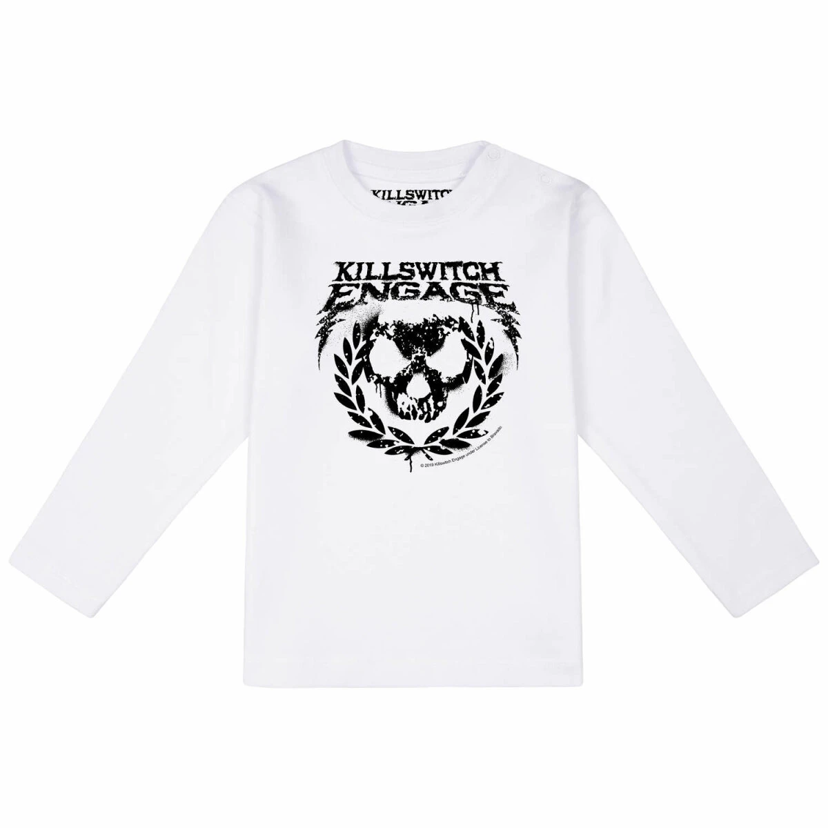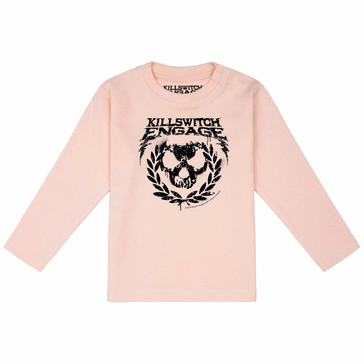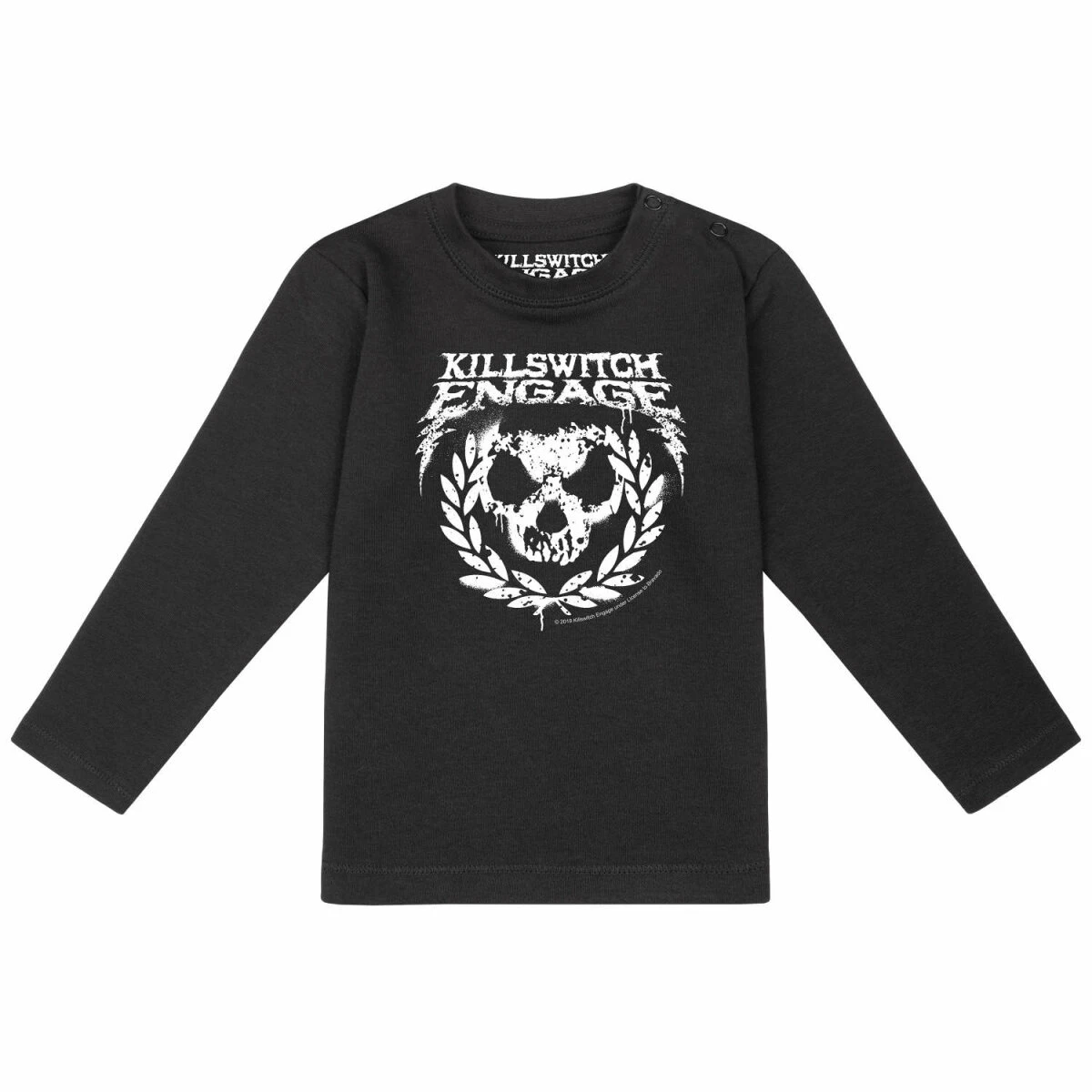 Unser Killswitch Engage (Skull Leaves) Baby Langarmshirt bietet dir alle Vorteile, die das T Shirt auch hat. Der Stoff ist angenehm weich und mit 200g/m² auch wirklich schön fest. Und trotzdem ist er gut dehnbar, damit es einfach angezogen werden kann. Die drei Knöpfe am Hals helfen dir dabei, dass Shirt gut über den „dicken“ Kopf zu ziehen. Sie sind in der gleichen Farbe, wie der Stoff, damit sie nicht so auffallen. Die Aufmerksamkeit soll ja auf dem tollen Skull Leaves Druck liegen. Der ist natürlich auf die Babyfreundlichkeit getestet.