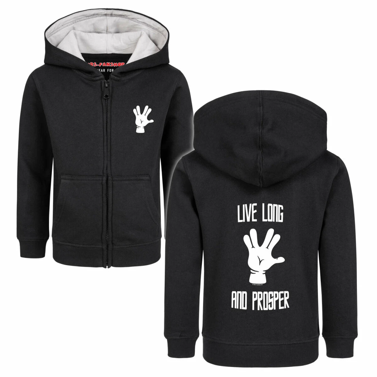 Unsere Live Long and Prosper Jacke ist wirklich etwas ganz Besonderes. Nicht nur wegen dem tollen Live Long and Prosper Motiv, sondern auch weil wir viel Herzblut in die Entwicklung gesteckt haben. Diese Kinder Kapuzenjacken gibt es nur bei uns, denn sie werden extra für uns hergestellt. Der Schnitt ist optimiert, dass er über mindestens zwei Kleidergrößen passt. So könnt ihr die Jacken einfach viel länger tragen.