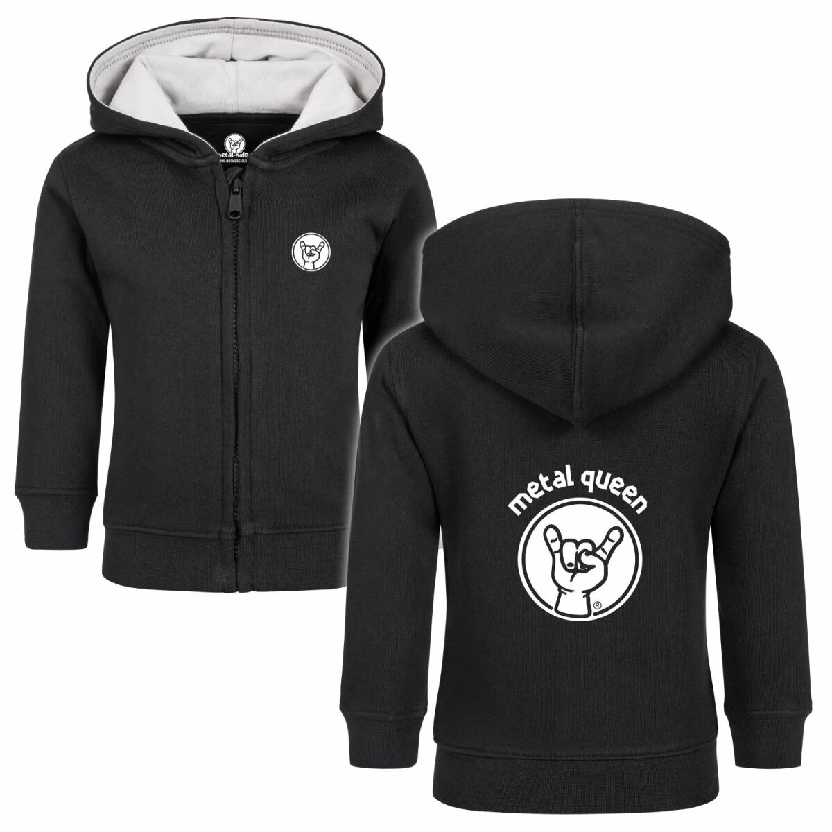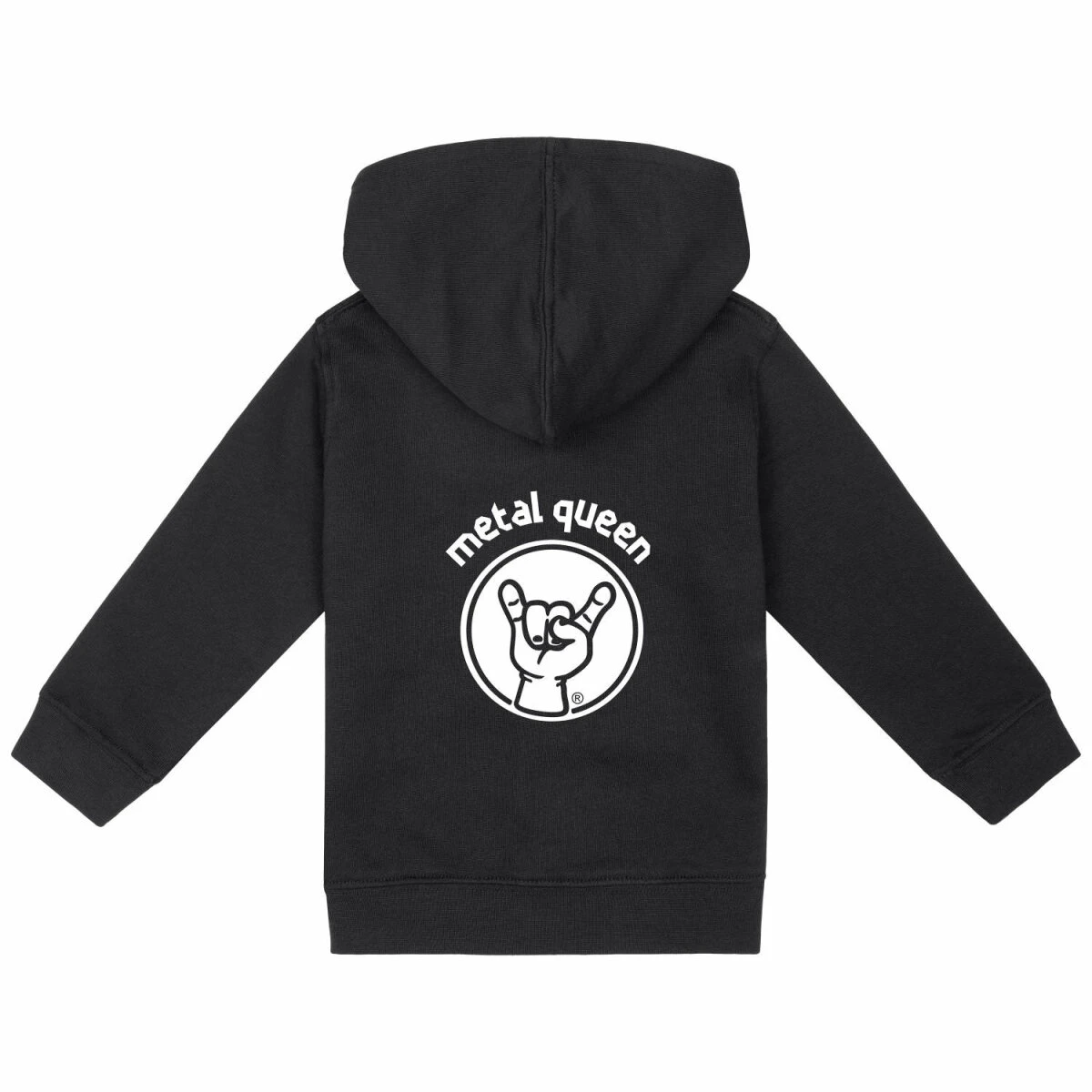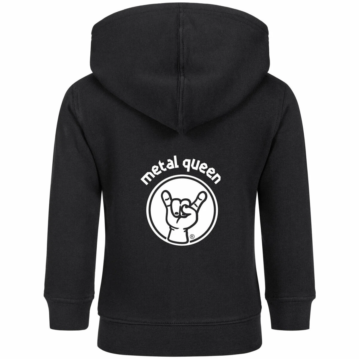 In die Produktentwicklung dieser metal queen (Classic) Jacke sind unsere eigenen Erfahrungen als Eltern eingeflossen. Wir kombinieren unsere Lieblingsmotive mit praktischen und sinnvollen Details. Die Kapuze ist innen mit einer extra Schicht aus stabilem Jersey Stoff ausgelegt. Damit schützt du den empfindlichen Baby-Kopf vor dem Auskühlen. Und es macht dieses Baby Jäckchen auch optisch zu einem echten Hit.