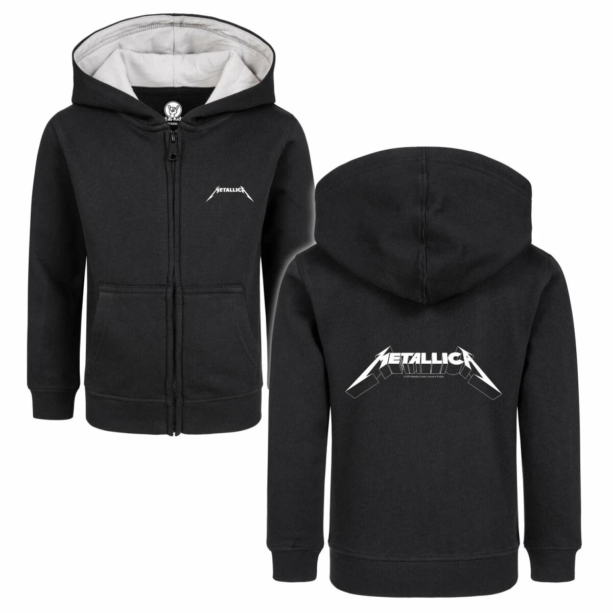 Unsere Metallica Jacke ist wirklich etwas ganz Besonderes. Nicht nur wegen dem tollen Logo Motiv, sondern auch weil wir viel Herzblut in die Entwicklung gesteckt haben. Diese Kinder Kapuzenjacken gibt es nur bei uns, denn sie werden extra für uns hergestellt. Der Schnitt ist optimiert, dass er über mindestens zwei Kleidergrößen passt. So könnt ihr die Jacken einfach viel länger tragen.