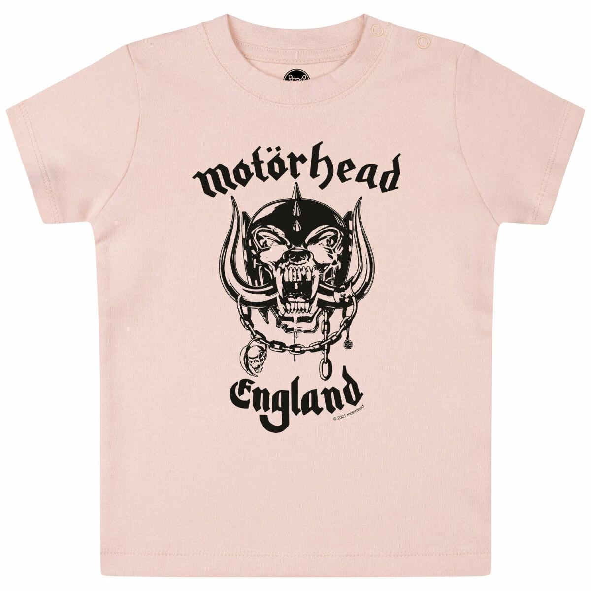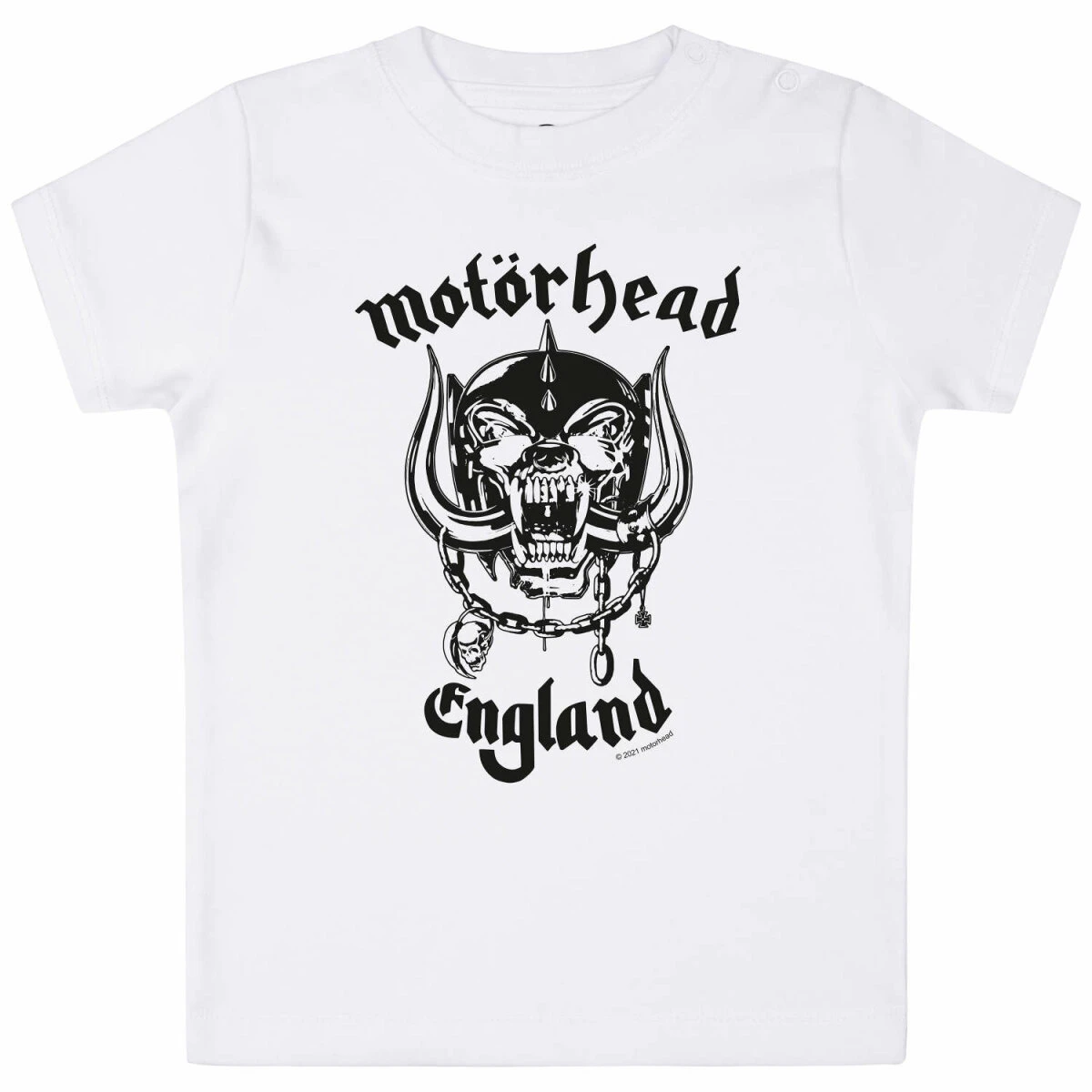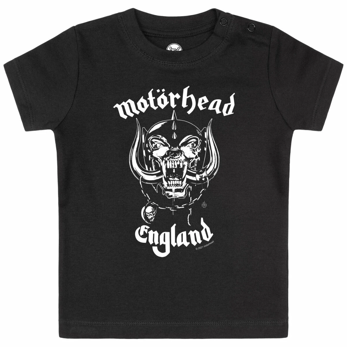 Unser Motörhead T-Shirt für Babys ist vielseitig tragbar. Während ein Body eher unter einem Shirt oder Pulli getragen wird, kann man unser Kurzarm T-Shirt auch mal über einem Longsleeve tragen. Das ist vor allem bei kälteren Temperaturen sehr praktisch. Dank der Druckknöpfe am Hals, lässt es sich sehr einfach an- und ausziehen. Damit die Druckknöpfe nicht auffallen, sind sie farbig an den Stoff angepasst.