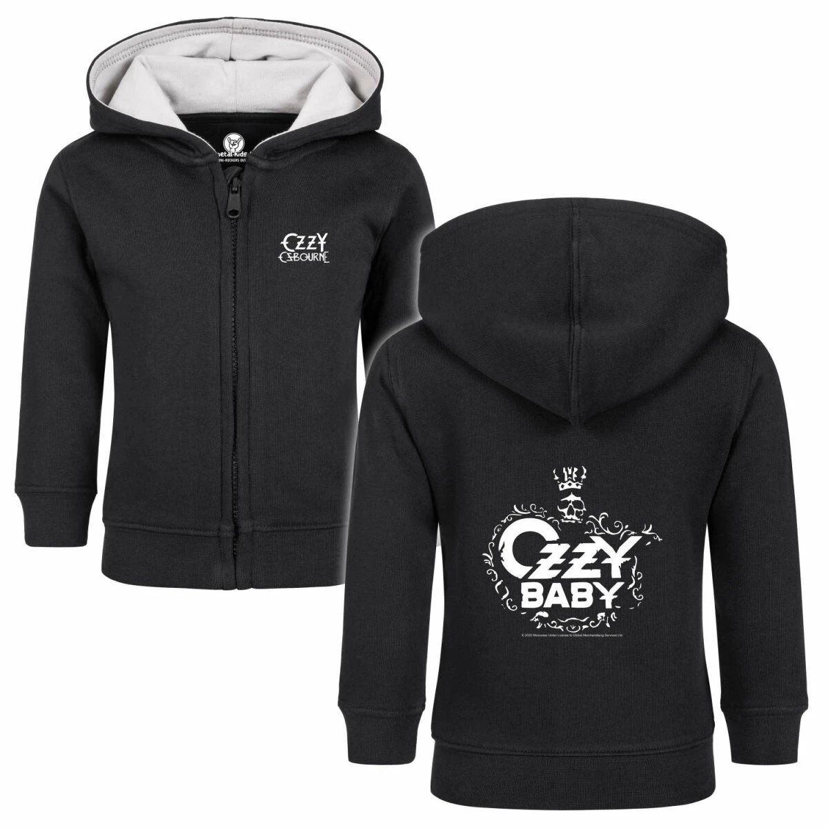 In die Produktentwicklung dieser Ozzy Osbourne (Ozzy Baby) Jacke sind unsere eigenen Erfahrungen als Eltern eingeflossen. Wir kombinieren unsere Lieblingsmotive mit praktischen und sinnvollen Details. Die Kapuze ist innen mit einer extra Schicht aus stabilem Jersey Stoff ausgelegt. Damit schützt du den empfindlichen Baby-Kopf vor dem Auskühlen. Und es macht dieses Baby Jäckchen auch optisch zu einem echten Hit.