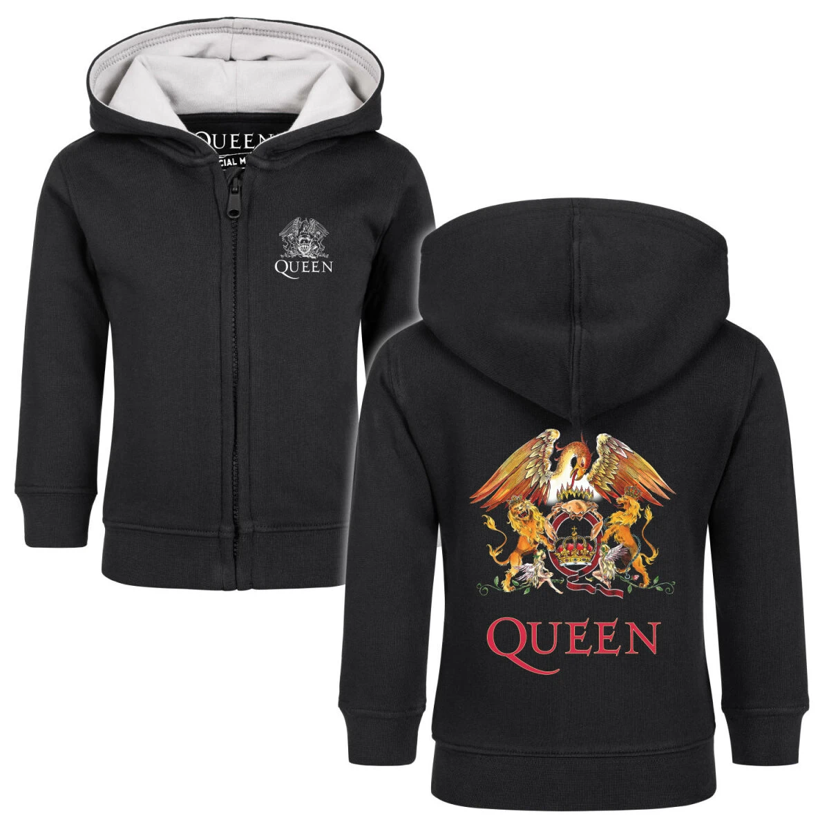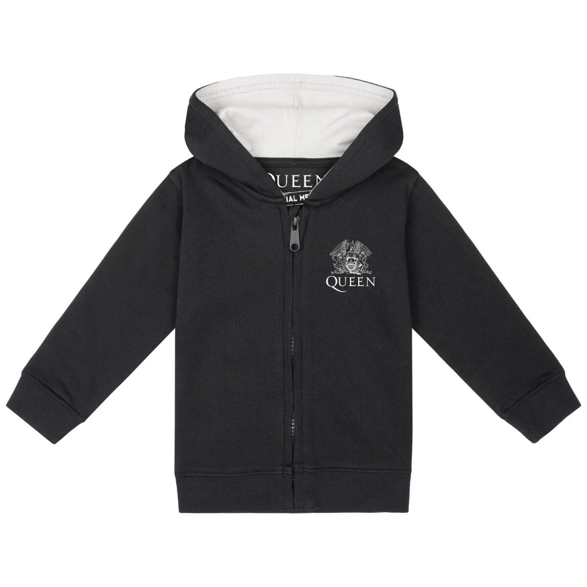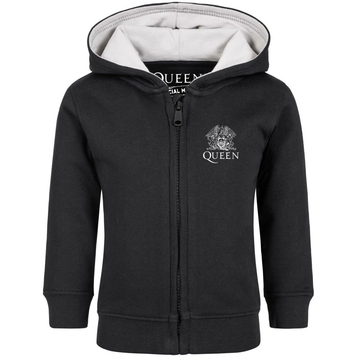 Dieses Queen Baby Jäckchen ist wirklich einzigartig. Und wir sind sehr stolz auf diese super niedliche Crest Baby Kapuzenjacke. Die Kombination aus weichem Stoff und stabilem Jersey für die Kapuze, macht sie zur perfekten Erstausstattung von Säuglingen. Damit der zarte Baby-Hals geschützt ist, haben wir extra einen Kratzschutz vernäht. Damit wird der Reißverschluss verdeckt. Zum Schutz vor Strangulierung gibt es keine Kordeln an der Jacke. Und damit das Baby auch bequem auf dem Bauch liegen kann, haben wir bei allen Babygrößen auf die aufgenähten Kängurutaschen verzichtet.