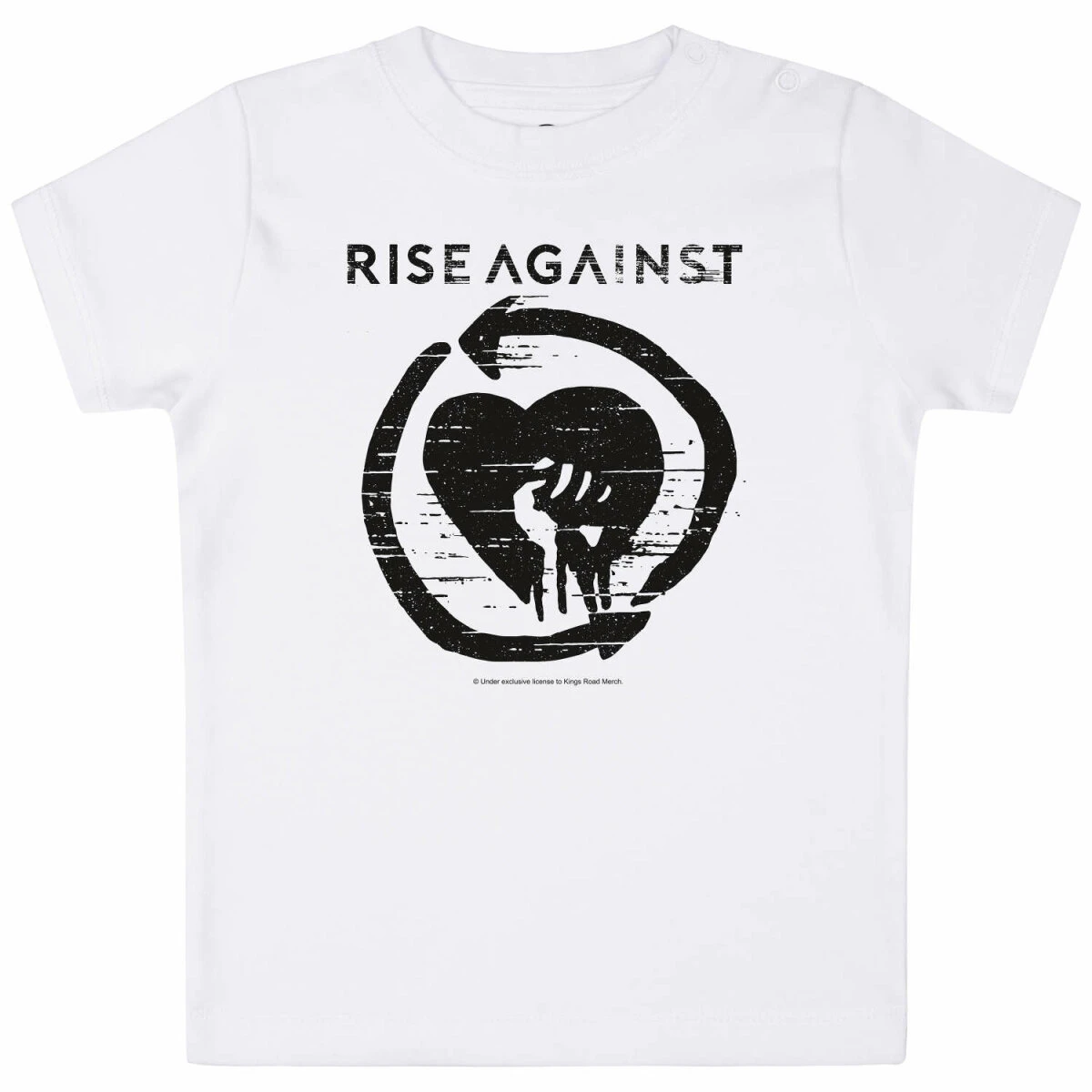 Unser Rise Against T-Shirt für Babys ist vielseitig tragbar. Während ein Body eher unter einem Shirt oder Pulli getragen wird, kann man unser Kurzarm T-Shirt auch mal über einem Longsleeve tragen. Das ist vor allem bei kälteren Temperaturen sehr praktisch. Dank der Druckknöpfe am Hals, lässt es sich sehr einfach an- und ausziehen. Damit die Druckknöpfe nicht auffallen, sind sie farbig an den Stoff angepasst.