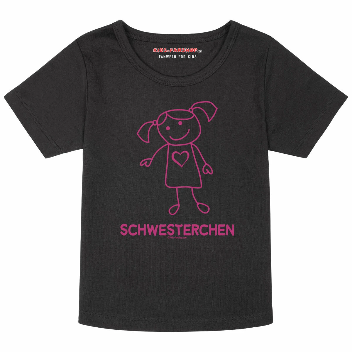 Unser Schwesterchen Shirt für Mädchen! Der Schnitt ist etwas körperbetonter als bei dem normalen Kinder T-Shirt. Außerdem unterscheidet sich das Girly Shirt in der Stoffart. Der stabile Interlock Stoff ist dehnbar und schmiegt sich trotzdem schön an. Das garantiert einen optimalen Sitz. Auch hier ist der Schnitt etwas länger und der Hals etwas weiter ausgeschnitten. Damit fühlt man sich so richtig als Mädchen. Aber natürlich immer noch kindgerecht. Auch die Ärmel sind etwas enger, damit das Ganze auch gut zusammenpasst.